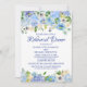 Beautiful watercolor floral rehearsal dinner invitation. Soft blue watercolor flowers create a romantic display. The floral design also includes ivory blooms and a touch of purple. Greenery keeps this romantic design open and airy. Rehearsal Dinner is written in a large flowing script. The remainder of the text is an elegant block style. Very easy to replace the sample text with your own.