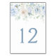 Blue and white roses, peonies, and hydrangeas wedding table card. Personalise with your own number. You have to do them one at a time and add to your cart.