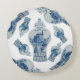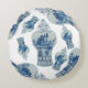 My blue and white ginger jar with castle and trees placed here and there by me on a round pillow.
