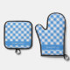 Blue And White Gingham Farmhouse Personalised Oven Mitt & Pot Holder Set