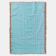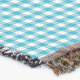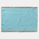 Blue and white gingham patterned blanket with fringe on edges. Displayed in horizontal and vertical orientations against a plain background.