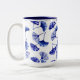 Blue and white prints are classic. This blue and white design features an allover pattern of gingko leaves.