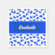 Blue and white graduation caps thrown in the air for both him and her. Nice graduation party paper napkins for a graduation party for a graduate from a high school, college, or university with school colours of blue and white. Personalise with graduation year and name of the graduate.