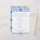Baby Shower game "Guess The Right Price?" in an elegant watercolor blue and white pattern, inspired by the type you can see on vintage ginger jars. All of the text is fully customisable to your needs.
