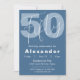 Blue And White Happy 50th Birthday Celebration Invitation. Customise with your details!