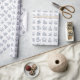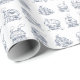 Blue Illustrated houses in tiled pattern on white gift wrap, ideal for new home gifts.
