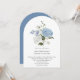 Celebrate love with this beautifully illustrated wedding invitation, featuring a single bouquet of blue and white hydrangeas with a sweet white rose and matching greenery. The airy botanical design is complemented by classic serif fonts, creating a timeless and romantic aesthetic. Perfect for vineyard weddings or spring celebrations, this invitation sets a graceful tone with its clean layout and fresh floral palette. Easy to personalise with your own information.