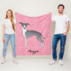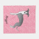 Blue And White Italian Greyhound On Pink Hearts Fleece Blanket