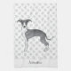 Blue And White Italian Greyhound With Custom Name Tea Towel