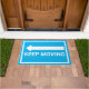 Blue and White Keep Moving Traffic Sign Left Doormat