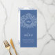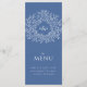 Mid blue and white wedding dinner menu. Edit this 4 course menu with your own meal option wording. Simple yet modern hand drawn leaves and monogram design. © Original drawing and design by Sarah Trett for www.mylittleedenweddings.com exclusively on zazzle.