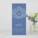 Blue and white leaf drawing monogram wedding menu
