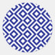 This bold blue and white geometric pattern is an original ornamental design. White meanders angle around dark blue diamonds containing white diamonds. Vibrant blue zigzags provide subtle separation between the winding paths.