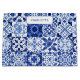 Blue and white Mediterranean tile watercolor pattern with modern typography text. Change the name to personalise. Original art by Nic Squirrell