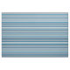 Summery striped fabric features a variegated horizontal stripe pattern in cool summer hues of navy, lagoon, pool blue and white.