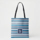 Our striped monogram tote bag features a variegated horizontal stripe pattern in cool summer blues, with your single initial monogram in coordinating navy blue. If not monogramming, simply delete the sample initial and click "clear" to remove the blue square.