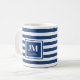 Blue and White Nautical Stripes Monogram Coffee Mug