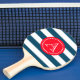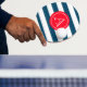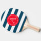 Blue and white striped navy pattern with red circle shape monogram decoration