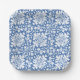 An elegant damask pattern repeat is a forever classic pattern in weathered blue and crisp white. Used on these disposable party plates, it makes the perfect accessory to any Mediterranean themed event from bridal showers to birthdays to garden parties. The blue background can be changed to match your event colours to make these plates a unique addition to your event decorations.