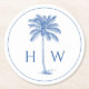 Blue and White Palm Palmetto Tree Monogram Round Paper Coaster