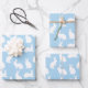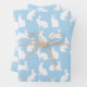 Destei's adorable silhouette design featuring white bunnies in various poses on a light blue background color. Perfect for Easter, for wrapping gifts for children or for bunny lovers who enjoy simple, modern designs.