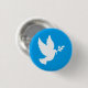 White silhouette shape of a dove with olive branch of peace against solid blue background.