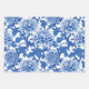 Blue and White Peony Chinoiserie Floral Wrapping Paper Sheet