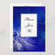 A custom Winter holiday invitation template with an elegant pattern of pine boughs and pinecones in blue and white on an icy background of blues and violet. Click Customise It to change fonts or colours.