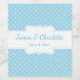 Elegant wine label perfect for a wedding or just a bottle of homemade wine. It features a blue background with white polka dots all over it. The centre is white with customisable blue text.