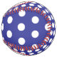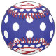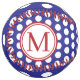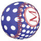 This monogrammed softball features preppy navy blue and white polka dots. Personalise the red and white monogram with your choice of initials. Great to use as gift bags and party favours.