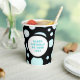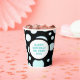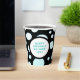 Personalise these fun and playful modern paper cups with your text within the border of sky blue and white gradient circles and polka dots on black. Personalise with a Name for a Happy Birthday.