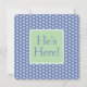 This sweet baby boy birth announcement note card features classic white polka dots on a background of baby boy inspired blue and accented with green. Personalize the front and back with your choice of special text.