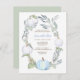 This blue and white pumpkin baby shower invitation features lush greenery and pretty pumpkins that frames your party details. A complimentary sage green colour adorns the back of your invitation. A rustic yet sophisticated choice for a fall sip and see, Thanksgiving co ed baby showers and autumn boy baby showers. To see more visit www.zazzle.com/vginvites