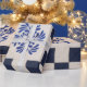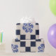 Quilt design of chequerboard blocks and a feathery Delftware-like design, 2008, from the Smithsonian’s Anacostia Community Museum, gift of Ira Blount.