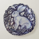 My original, copyrighted intricate rabbit and creatures ceramic plate design is a cute pillow pattern. Shadings and reflections on the plate are visible. Perfect blue & white kitchen accent.