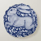 My original, copyrighted blue and white rabbit ceramic plate is reinterpreted on this beautiful pillow.