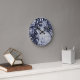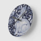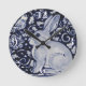 Blue and White Rabbit with Bird Tile Design Round Round Clock