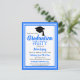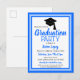 Mail this Blue and White School Colours Grad Party Postcard Invitation to family and friends to honour your high school or college graduate. Customise it with the grad's name, school, and party details. This stylish modern invite features black and blue school colours and a feminine script font.