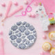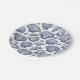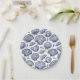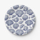 Summer beach house themed paper plates with clam, scallop and seashells in blue and white for coastal, nautical decor.