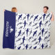 Blue and White Shark Pattern with Name Boy Fleece Blanket