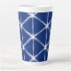 Shibori is the Japanese technique for tie-dying. This watercolor look pattern features white geometric lines on a navy / indigo blue background