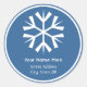 A sticker featuring a white snowflake over a blue background. White circle surrounding design. Personalise with your name and address under snowflake. Look for matching items at Jill's Paperie.
