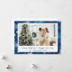 Send warm winter wishes with this elegant flat holiday photo card, featuring a rich blue background adorned with delicate white snowflakes and soft bokeh accents. Designed as a one-sided flat card, this piece offers a clean, modern format that showcases your favorite family photo in a beautifully framed layout. Underneath the image, a customizable holiday message and family name add a personal and heartfelt touch.