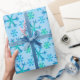 Blue and White Snowflake Hexagon Pattern Wrapping Paper