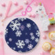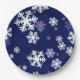 Blue and White Snowflakes On Dark Blue Ground Paper Plate
