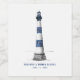 Designer Maura A. © for Sly Coconut Creative Designs. An elegant simple design featuring a one of a kind hand drawn lighthouse in a blue and white colour theme. Fonts are customisable.