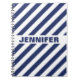 Cool blue and white diagonal striped design. Click personalise and replace the name with your own.