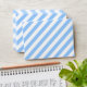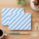 A light blue and white candy stripe pattern background design. The stripes in this design are diagonal.