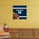 American football players, grid iron fans and football team coaches whose team colors are dark blue and white will enjoy this design featuring a sports jersey style design in dark blue with white stripes and customizable text for their name and number. A football is also featured as part of the design. Made in part from graphic licensed and © Graphics Factory.com.
