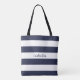 Blue and White Stripes with Name Tote Bag